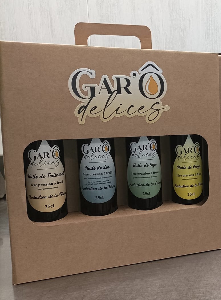 Le coffret qui permet de découvrir les huiles de colza, lin, soja et tournesol avec des bouteilles de 25cl.